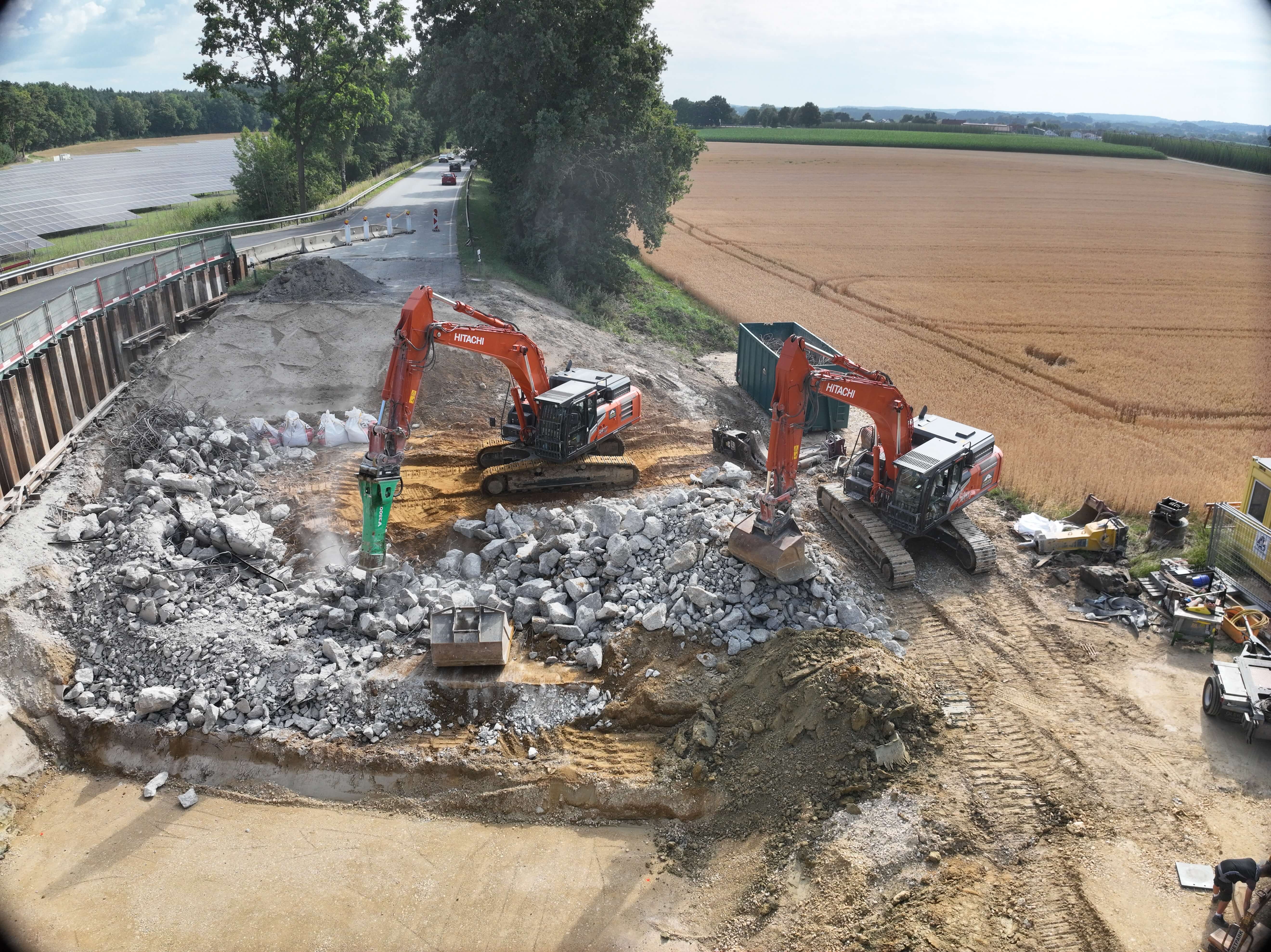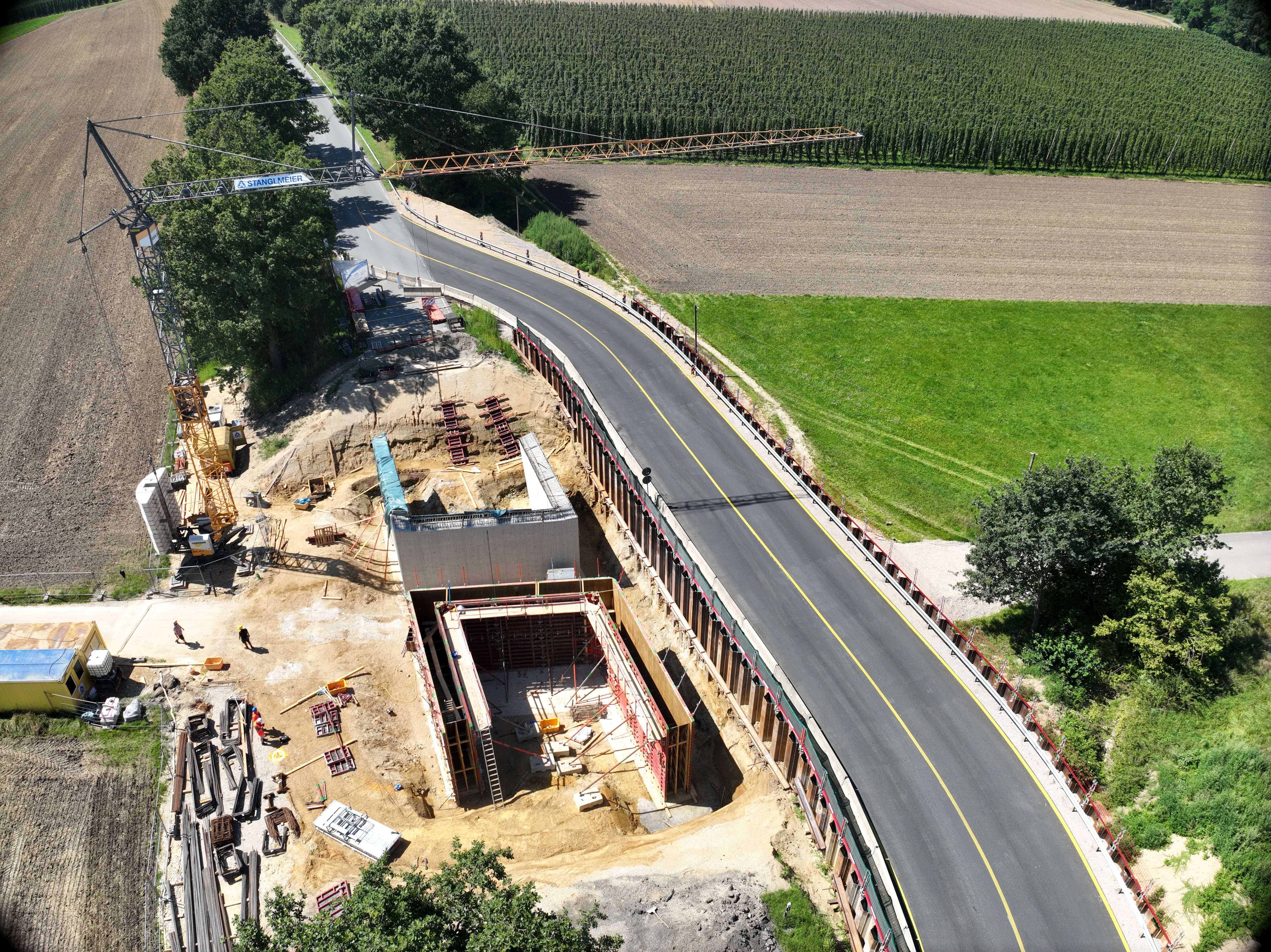 Die Josef Stanglmeier Bauunternehmung GmbH & Co. KG führt derzeit den Abbruch der bestehenden und den Neubau der Brücke im Zuge der Bundesstraße B16 über einen Feldweg bei Altdürnbuch aus.